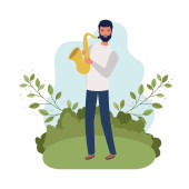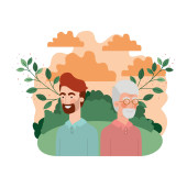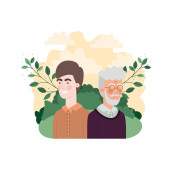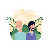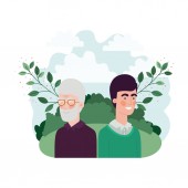 ojciec z synem w postaci krajobrazu i liści