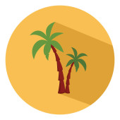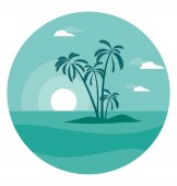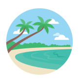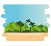 Gorąca piaszczysta plaża z drzew kokosowych i długich linii brzegowej rysunku kolor lub ilustracji