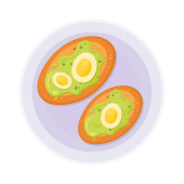 Pyszne jajka gotowane, które jest cięte na dwie połówki i jest gotowy do obsługi rysunku kolor wektorowy lub ilustracji