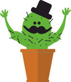 Długi Kaktus krzycząc głośno i ubrany w niebieski kapelusz kolor rysunku lub ilustracji