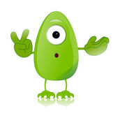 Cute zielony potwór z trzema zielonymi rogami i dwóch nogach wektor kolor rysunek lub ilustracji