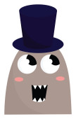 Potwór z otwartymi ustami pokazując zęby na sobie niebieski kolor kapelusza wektor rysunek lub ilustracji