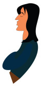Człowiek z długimi czarnymi włosami ubrany w czerwony szalik rysunek lub ilustrację