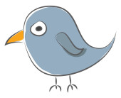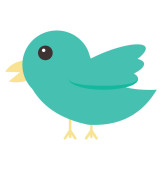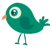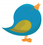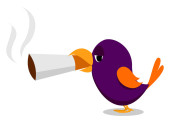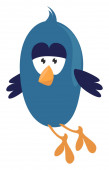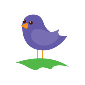 Cartoon fioletowy ptak ustawiony na białym tle, patrząc od