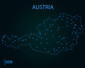 Mapa Austrii z węzłami połączonymi liniami. koncepcji globalnego Commun