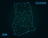 Mapa Ghana z węzłami połączone liniami. koncepcji globalnej komunikowanie