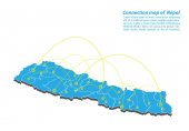 Nepal mapa z węzłami połączone liniami. koncepcji globalnej komunikowanie