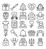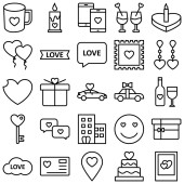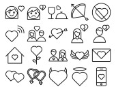 Miłość, romans i ślub wektor zestaw ikon, które można łatwo modyfikować lub edytować