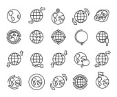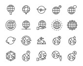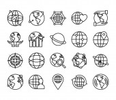 Planeta Ziemia globu z kontynentów mapy na całym świecie ikony zestaw czarno-biały