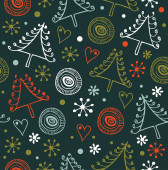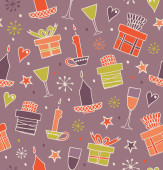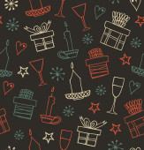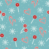 Seamless holiday Christmas pattern. Cute winter background with caps, scarfs, mittens and lollipops, sugarplums. Endless craft texture