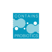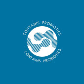 Probiotyki logo. Logo bakterii. Koncepcja składnik zdrowego żywienia dla celów terapeutycznych. Proste płaski trend projektowania graficznego nowoczesne logo na białym tle
