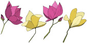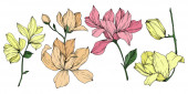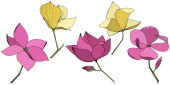Zdjęcie "Vector Magnolia Foral kwiatów botanicznych. Fioletowo-żółta grawerowana sztuka atramentu. Izolowany element ilustracji magnolii." może być wykorzystywane do celów osobistych i komercyjnych zgodnie z warunkami zakupionej licencji Royalty-free. Obraz jest dostępny do pobrania w jakości wysokiej rozdzielczości do 5760x3840.