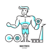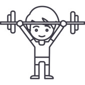 Człowiek trening z ciężarkami, ręce się ikona linii wektor, koncepcja liniowa, znak konspektu, symbol