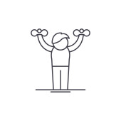 Zdjęcie "Człowiek trening z ciężarkami, ręce się ikona linii wektor, koncepcja liniowa, znak konspektu, symbol" może być wykorzystywane do celów osobistych i komercyjnych zgodnie z warunkami zakupionej licencji Royalty-free. Obraz jest dostępny do pobrania w jakości wysokiej rozdzielczości do 5760x3840.