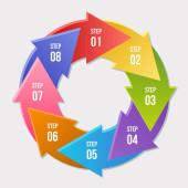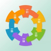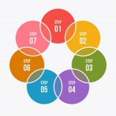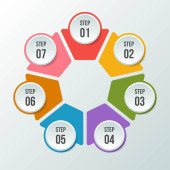 Wykres okręgu, infografika strzałki okręgu lub szablony diagramu cyklicznego z 7 krokami