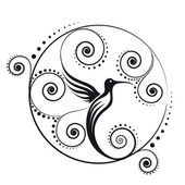 Sylwetka czarnego puszystego dekorowane łabędź, ornament, wektor
