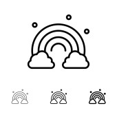 Natura, tęcza, wiosna, fala pogrubiona i cienka Czarna linia ikona zestaw