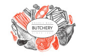 Zdjęcie "Vintage wektor mięso ilustracja na pokładzie kreda. Ręcznie rysowane stek zestaw, przyprawy i zioła. Surowe składniki żywności. Retro szkic. Może być używany do etykiet, menu restauracji." może być wykorzystywane do celów osobistych i komercyjnych zgodnie z warunkami zakupionej licencji Royalty-free. Obraz jest dostępny do pobrania w jakości wysokiej rozdzielczości do 5760x3840.