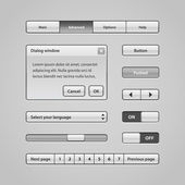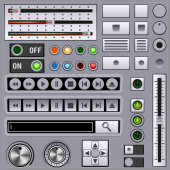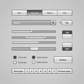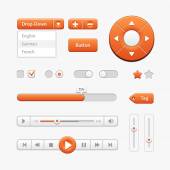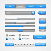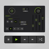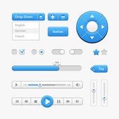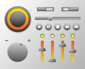Interfejs użytkownika czyste światło kontroluje 6. elementy www. Strona internetowa, oprogramowanie interfejsu: przyciski, przełączniki, strzałki, drop niedziałający, pasek nawigacji, menu, Szukaj, korektor, mikser, poziomy, listy odtwarzania, gracz, postęp