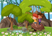 dziewczyna i chłopak jazda samochodem przechodzi do jaskini