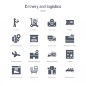 zestaw 16 ikon wektorowych koncepcji dostawy i logistyki takich