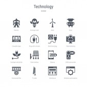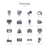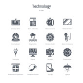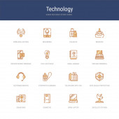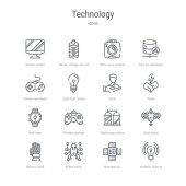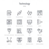zestaw 16 ikon technologicznych koncepcji linii wektorowych, takich jak Cross stu