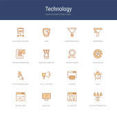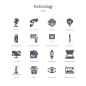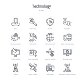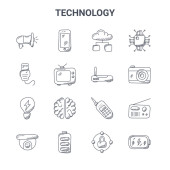 zestaw 16 ikon technologicznych koncepcji linii wektorowych, takich jak tablet Wi