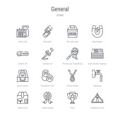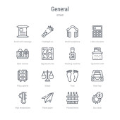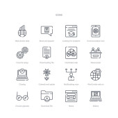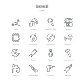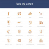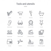 zestaw 16 narzędzi i przyborów koncepcyjnych linii wektorowych ikon takich jak d