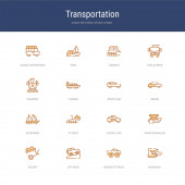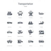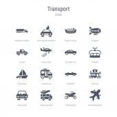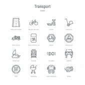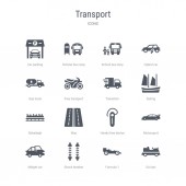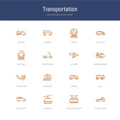 zestaw 16 ikon linii wektorowych koncepcji transportu, takich jak pojazdów kół