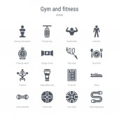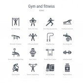 zestaw 16 siłowni i fitness koncepcji linii wektorowych ikon, takich jak phyt