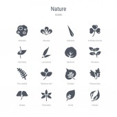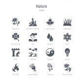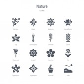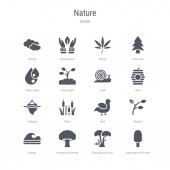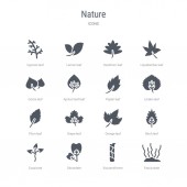 zestaw 16 ikon wektorowych, takich jak gałęzie bambusa, drzewo bonsai, BAM