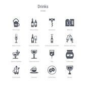 zestaw 16 ikon wektorowych, takich jak tosty, tuba, stół piknikowy, szynka, v