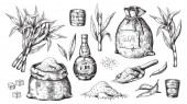 Korzeń i liście żeń-szeń. Ilustracja wektorowa grawerowane