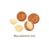 Orzechy i nasiona w płaskiej konstrukcji wektor zestaw ilustracji. Kolekcja orzechów, ikony nasion, elementy infografiki na białym tle.
