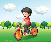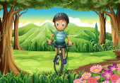 profesjonalny rowerzysta jeździ rowerem w ogrodzie