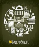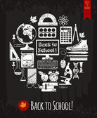 Wróć do szkoły. Zestaw Doodle Chalkboard. Rysunek odręczny-wektor z napisami