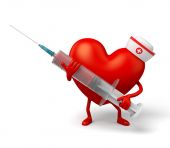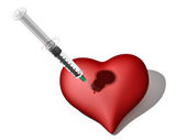 czerwone serce z strzykawki i tabletki na białym tle