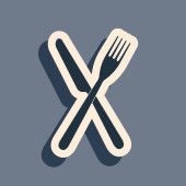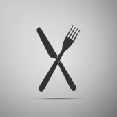 Skrzyżowane widelec i ikona noża na białym tle. Ikona restauracji. Płaska konstrukcja. Ilustracja wektorowa