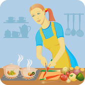 Piękna kobieta jest gotowanie. Dama wylewa herbatę do filiżanek. Dziewczyna ustawia tabelę. Ilustracja wektorowa