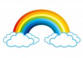 Tęcza z chmurami-ilustracją kreskówki kolorowych Rainbow z chmurami.