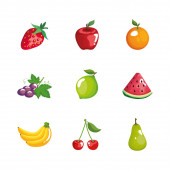 Truskawka, arbuz, cytryna, wapno na białym tle, świeże owoce letnie.