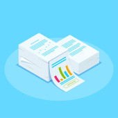 Dzienny raport lub koncepcja kontroli. Dokumentowanie i pióro na grafice tła. Może używać do wstęgi www, infografiki, obrazy bohaterów. Ilustracja wektorowa izometryczna.
