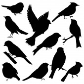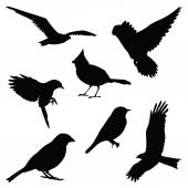 zbiór sylwetki ptaków dzikich, ilustracji wektorowych.