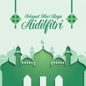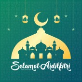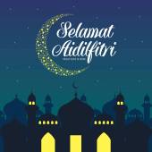 Selamat Hari Raya Aidilfitri ilustracja karty okolicznościowe wektor. (Podpis: Święto postu dzień znany również jako Eid al-Fitr)