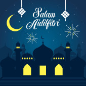 Selamat Hari Raya Aidilfitri ilustracja karty okolicznościowe wektor. (Podpis: Święto postu dzień znany również jako Eid al-Fitr)