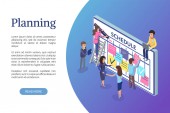 szablon baner biznesowy, zespół Cartoon w pracy i planowania napis