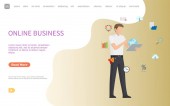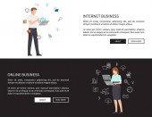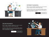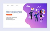 szablon baner biznesowy, zespół Cartoon pracy z tabletem PC i internetowych napis biznesowy