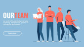 mężczyzn i kobiet pracujących razem, spotkać się z naszym zespołem napis