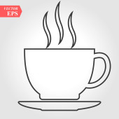 filiżankę kawy i herbaty z pary linii ikona czarno-biała