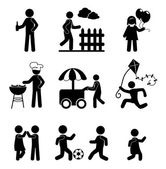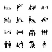 Zestaw piktogramów reprezentujących wiązanie między ludźmi i zwierzętami.